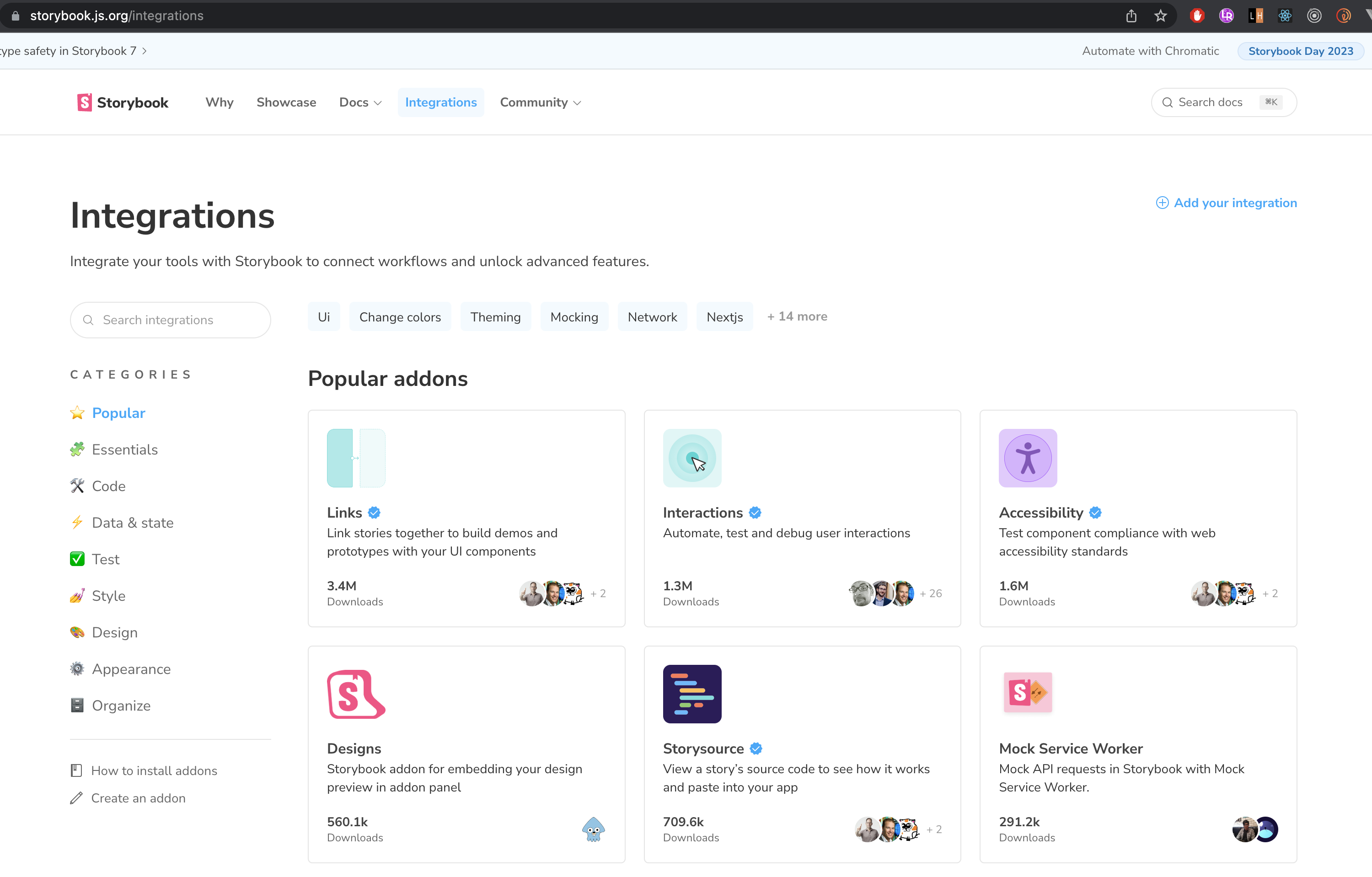 - Addon 필수기능은 default로 설치되고, storybook 커뮤니티 또는 github에서 다운받아 확장할 수 있습니다.